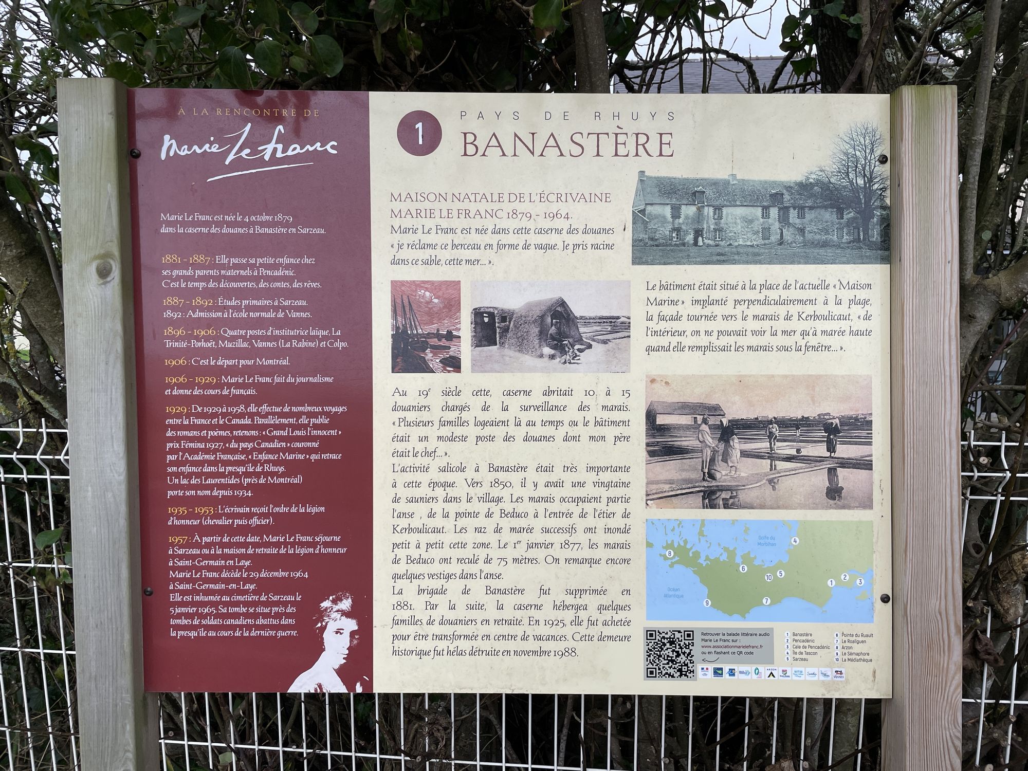 Ces panneaux sont sonorisés depuis 2022, grâce à un QR code. Pour chaque panneau ont été choisis des extraits d’œuvres de Marie Le Franc, interprétés par une comédienne et portés par le fond musical de la symphonie Bretagne (Didier Squiban et Pierre-Yves Moign). Ces extraits sont accessibles par smartphone ou ordinateur. L’alliance des textes et de la musique, en superposition de paysages souvent marins, fera de vos « pauses lettrées » des moments rares.