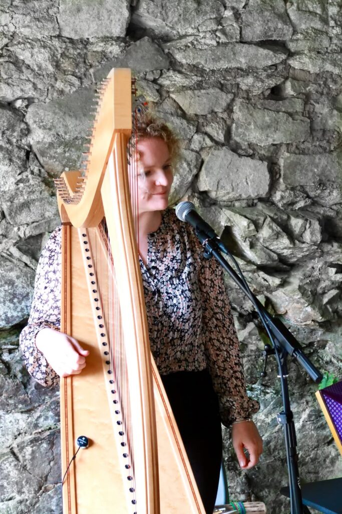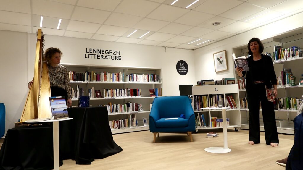 À Sarzeau, la voix de Marie Le Franc a résonné dans le château de Kerlévenan, samedi après-midi 20 septembre 2025, lors des journées du patrimoine. A l’initiative de l’Association Marie Le Franc, Cécile Fontaine, lectrice publique a prêté sa voix pour des extraits de quatre œuvres majeures : Enfance marine, Pêcheurs du Morbihan, Hélier, fils des bois et Grand-Louis l’Innocent. Elle était accompagnée de Virginie le Furaut à la harpe et au chant. La poésie des textes, l’interprétation très sensible ont enthousiasmé près de cinquante personnes, venues dans ce cadre majestueux du Château de Kerlévenan. La famille de Gouvello a accueilli avec bienveillance et chaleur l’association, les artistes et le public, tous repartis contents de ce moment hors du temps.