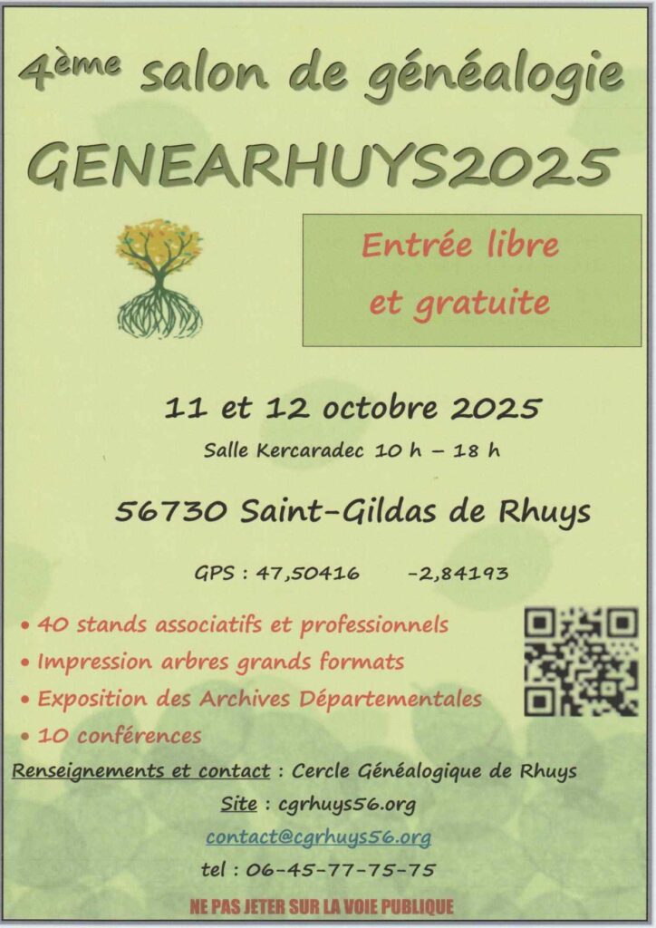 Pour la première fois, l’Association Marie Le Franc est invitée à participer à ce salon bisannuel. Venez nombreux voir l’arbre généalogique d’ascendance de Marie Le Franc, découvrir le monde de la généalogie, et écouter une des dix conférences prévues.